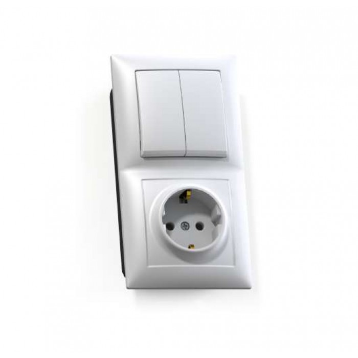 Блок СП БКВР-412 Селена (2-кл. выкл. + розетка с заземл.) бел. Кунцево 8208