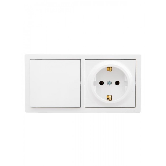 Блок выключатель 1-клав. и розетка 1-местн с заземл. LETO белый горизонталь LEZARD 752-0200-170BAP 1818602...
