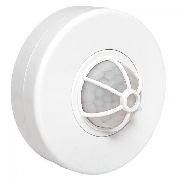 Датчик движения инфракрасный MS-28A предназначен для экономии электроэнергии за счет автоматического управления освещением и другими инженерными системами. Датчик реагирует на движение людей и других объектов в зоне действия сенсора, принцип работы датчика основан на отслеживании уровня ИК-излучения в поле зрения. Датчик MS-28A предназначен для накладного монтажа на потолок. Рекомендуется использовать датчик в кладовках, гардеробных и других помещениях с временным пребыванием людей. Алгоритм работы: при возникновении движения в поле зрения датчика встроенное электромеханическое реле (рассчитано на полную мощность 1200Вт) коммутирует подключенную нагрузку. После этого нагрузка находится под напряжением в течение заданного времени (от 10 сек. до 7 минут, время настраивается) и выключается. Дополнительно датчик имеет функцию контроля освещенности. Если освещенность в зоне детекции выше заданного уровня (настраивается), то нагрузка включаться не будет, что позволяет дополнительно экономить электроэнергию.