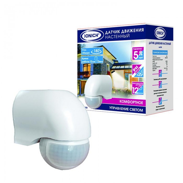 Датчик движения настенный 12м 1200Вт 12мин бел. IONICH 2002