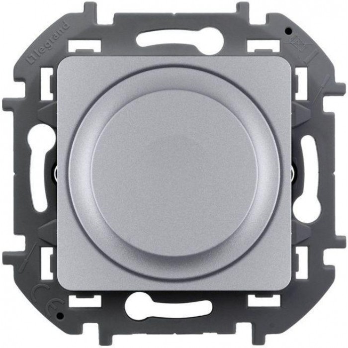 Диммер поворотно-нажимной универсальный для светодиодных и других ламп скрытого монтажа Inspiria, мощность 5-300 Вт лампы накаливания / 5-75 Вт светодиодные лампы, поворотно-нажимной, цвет "Алюминий". Используется для ре...