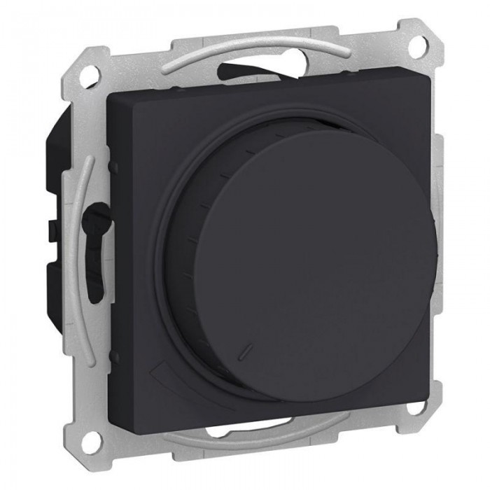 Механизм светорегулятора Systeme Electric (ранее Schneider Electric) серии AtlasDesign (цвет карбон) поворотно-нажимной для нагрузки мощностью до 400 Вт, подходит для LED ламп. - Светорегулятор позволяет установить в помещении комфортный уровень освещения. - При подключении второго переключателя диммер может использоваться как проходной переключатель. - Может использоваться как выключатель или переключатель. - Выполнен из материала, стойкого к УФ-излучению и появлению царапин.