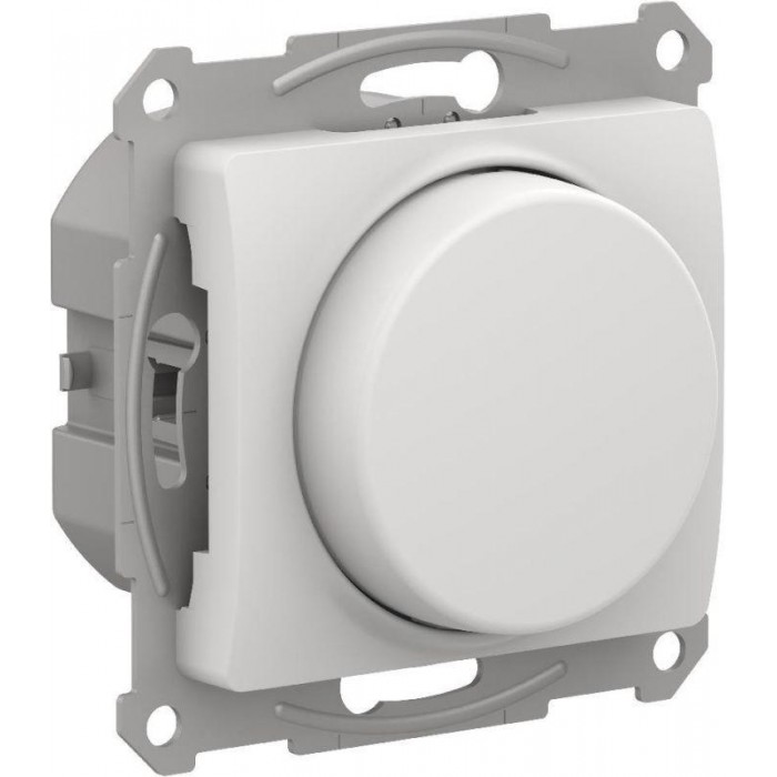 Механизм светорегулятора Systeme Electric (ранее Schneider Electric) серии Glossa (цвет белый) поворотно-нажимной для нагрузки мощностью до 400 Вт, подходит для LED ламп. - Светорегулятор позволяет установить в помещении комфортный уровень освещения. - При подключении второго переключателя диммер может использоваться как проходной переключатель. - Может использоваться как выключатель или переключатель. - Выполнен из материала, стойкого к УФ-излучению и появлению царапин.