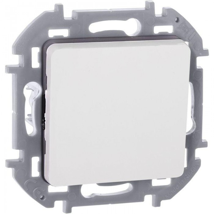 Выключатель кнопочный одноклавишный скрытого монтажа Inspiria, цвет "Белый", номинальный ток 6А, напряжение ~250В, безвинтовые зажимы. Устанавливается в жилых и общественных помещениях для управления импульсными реле, звонками и т.п.