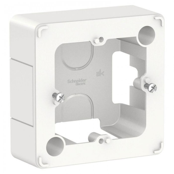 Коробка Systeme Electric (ранее Schneider Electric) BLANCA (белый) подъемная, однопостовая предназначена для наружного монтажа электроустановочных изделий серии Blanca. Коробка рассчитана на установку розетки до 32 А. Имеется возможность соединения нескольких коробок. Размеры коробки: 86*86*34 мм. Корпус изделия выполнен из ABS-пластика.