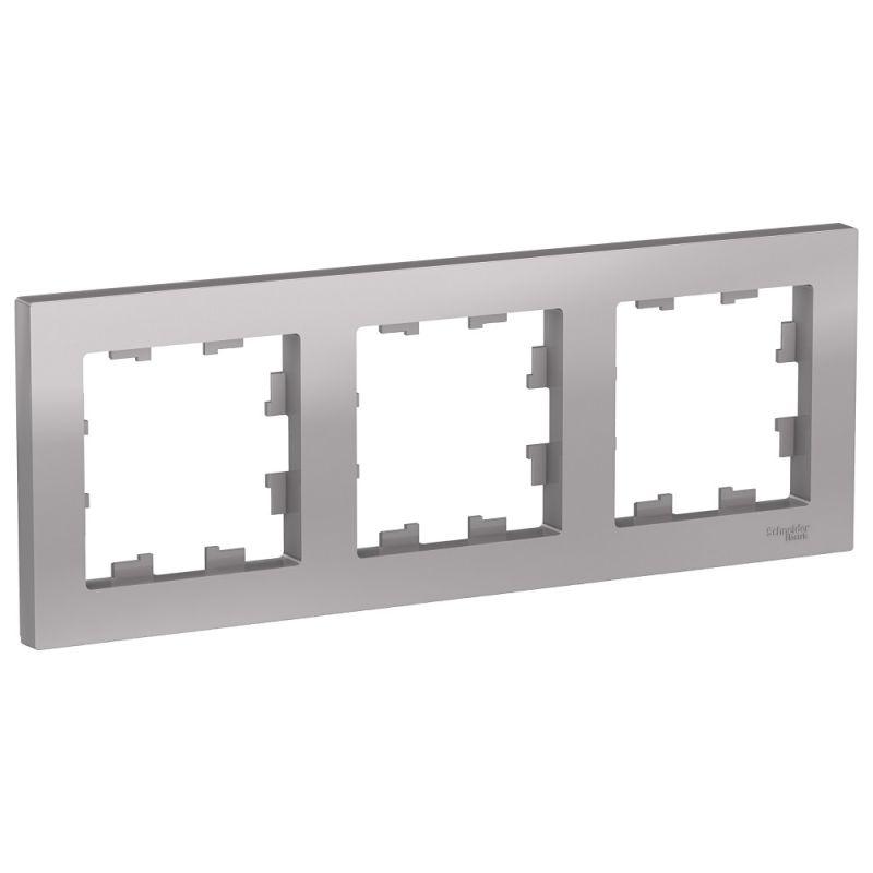 Рамка Systeme Electric (ранее Schneider Electric) серии AtlasDesign в цвете алюминий трёхместная. - ..