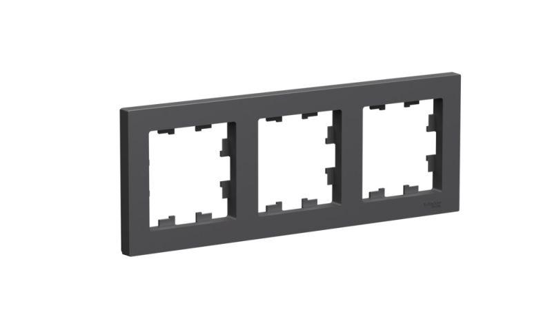 Рамка Systeme Electric (ранее Schneider Electric) серии AtlasDesign в цвете БАЗАЛЬТ трёхместная. - У..
