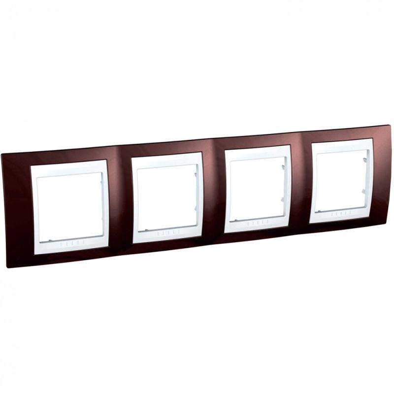 Рамка Schneider Electric UNICA ХАМЕЛЕОН (терракотовый) четырёхместная с белой декоративной вставкой...