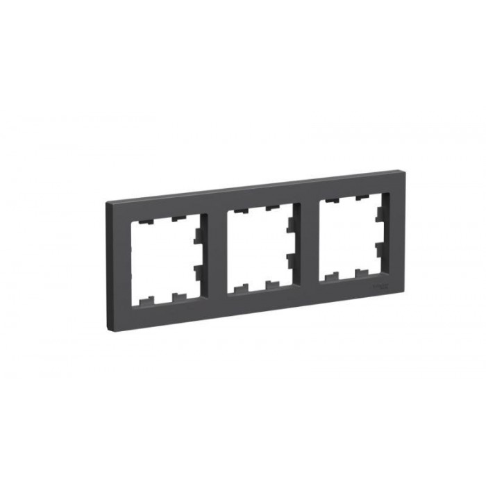 Рамка Systeme Electric (ранее Schneider Electric) серии AtlasDesign в цвете БАЗАЛЬТ трёхместная. - Устанавливается в вертикальном и горизонтальном положениях. - Лицевые детали из качественного ABS-пластика, устойчивого к царапинам и УФ-излучению. - Позволяет гармонично вписать электроустановочное изделие в интерьер помещения.