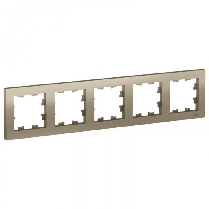 Рамка Systeme Electric (ранее Schneider Electric) серии AtlasDesign в цвете шампань пятиместная. - Устанавливается в вертикальном и горизонтальном положениях. - Лицевые детали из качественного ABS-пластика, устойчивого к царапинам и УФ-излучению. - Позволяет гармонично вписать электроустановочное изделие в интерьер помещения.
