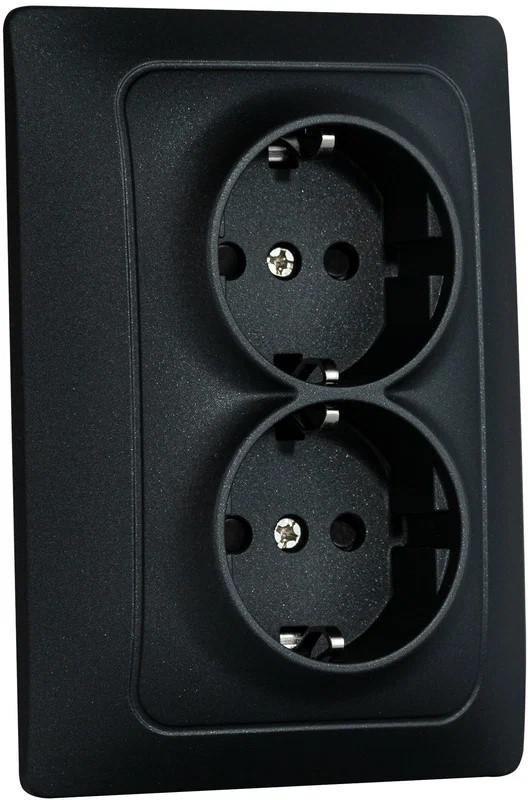 Механизм розетки 2-местн. с/з с з/ш СП Bravo 16А IP20 250В графит GUSI С10Р6-010 1760602..