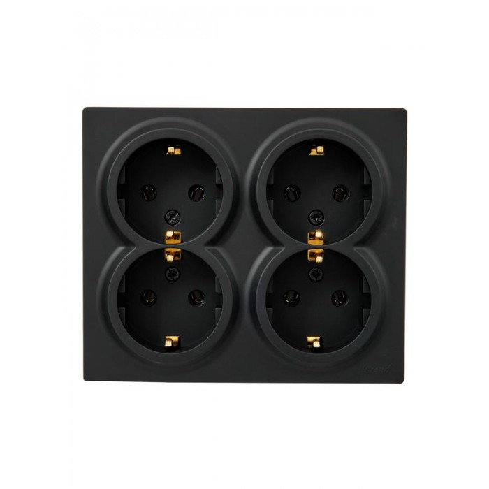 Розетка 4-мест. с заземл. LETO закрытый корпус ПБТ черн. бархат LEZARD 752-4200-127BDP