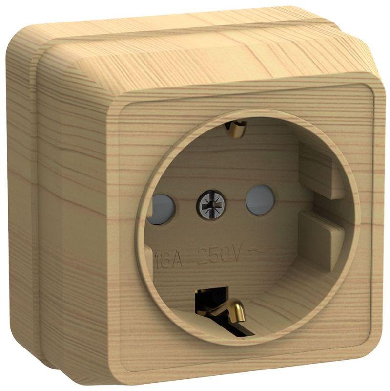 Розетка 1-м ОП Олимп 16А IP20 без заземл. сосна UNIVersal 5560896 315929..