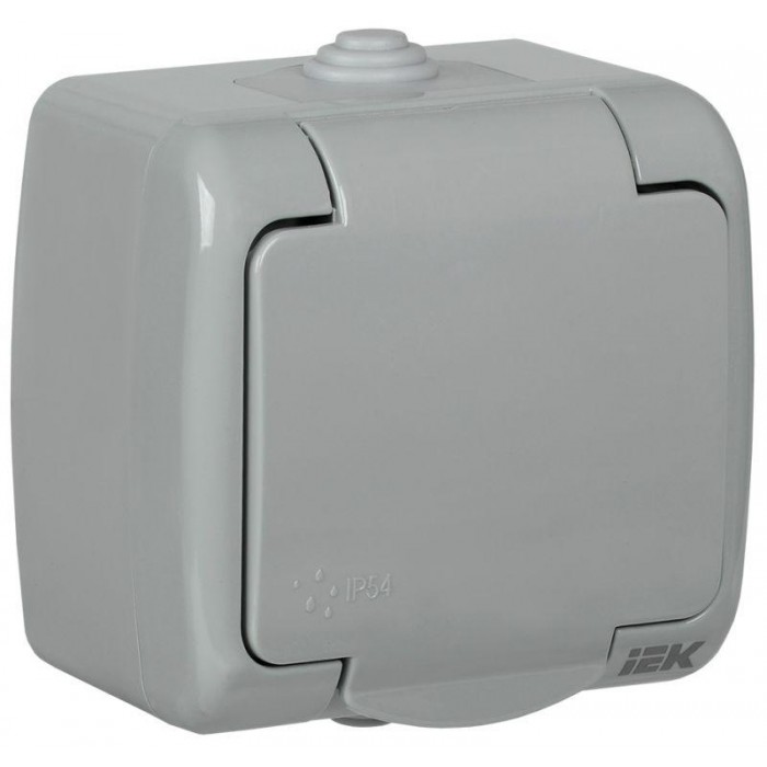 Розетка 1-м ОП Aquatic РСш12-2-А 16А IP54 с заземл. с крышкой сер. IEK ERA12-K03-16-54