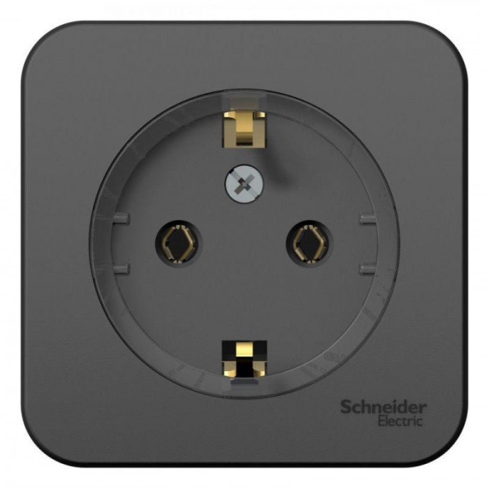 Розетка Systeme Electric (ранее Schneider Electric) BLANCA (антрацит, открытой установки) одноместная, с заземлением, без шторок предназначена для сетей до 250В, на ток до 16А. Заземление обеспечивает безопасность при ко...