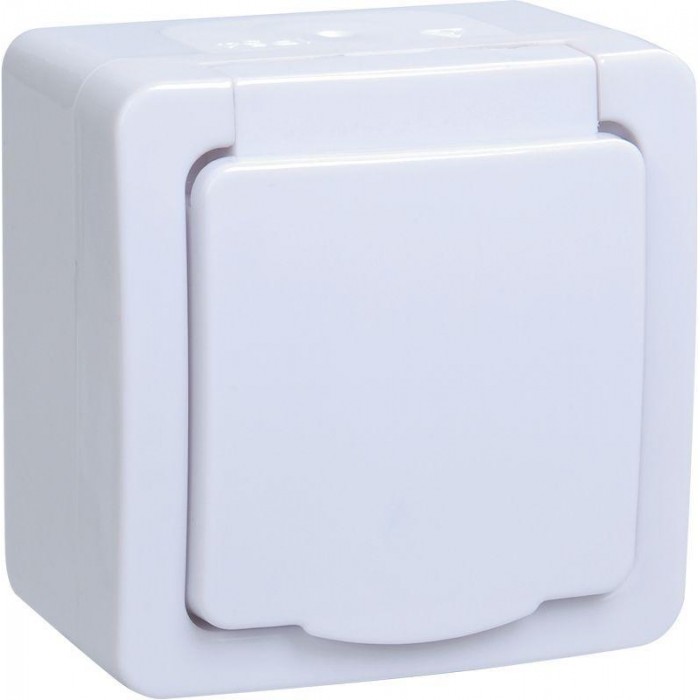 Розетка 1-м ОП Гермес Plus РСб20-3-ГПБб 16А IP54 с заземл. с крышкой бел. IEK ERMP12-K01-16-54-EC