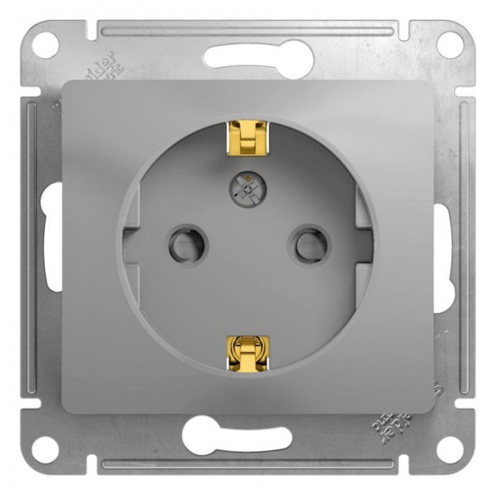 Механизм Systeme Electric (ранее Schneider Electric) серии Glossa (цвет алюминий) розетки одинарной с заземлением и шторками подходит для сетей 250 В, на ток 16 А. - Заземляющий контакт обеспечивает дополнительную защиту...