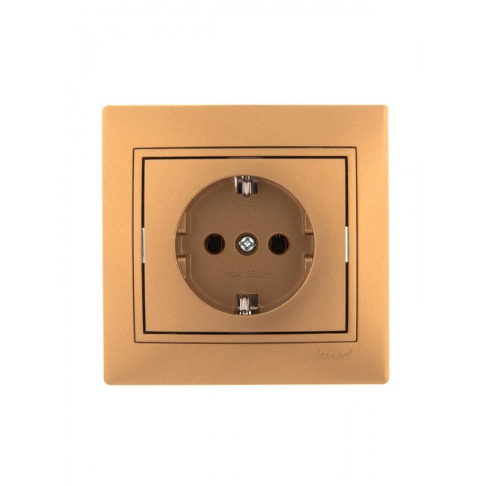 Розетка 1-м СП Mira 16А IP20 с заземл. со вставкой керамика зол. метал. LEZARD 701-1313-122