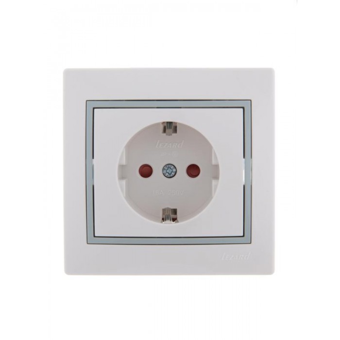 Розетка 1-м СП Mira 16А IP20 с заземл. защ. шторки с сер. вставкой керамика бел. LEZARD 701-0215-124