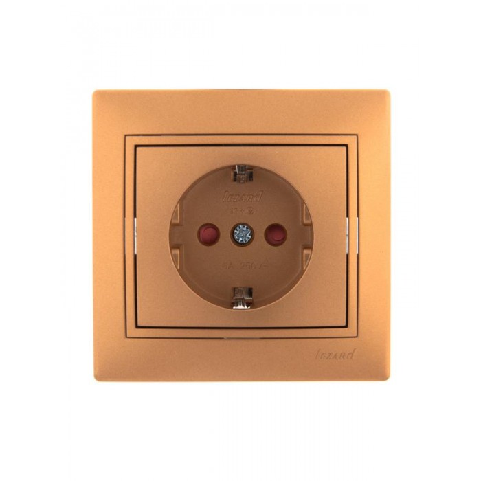 Розетка 1-м СП Mira 16А IP20 с заземл. защ. шторки со вставкой керамика зол. метал. LEZARD 701-1313-124 200016