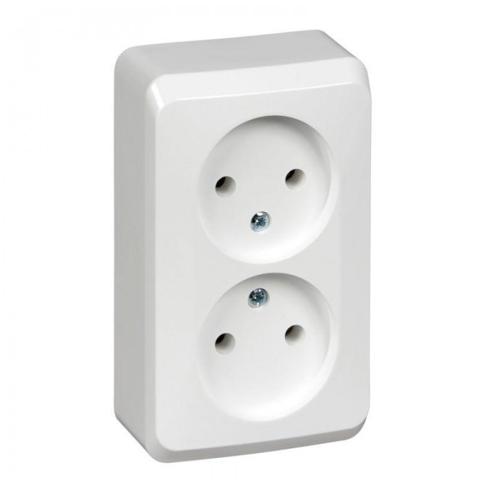Розетка Systeme Electric (ранее Schneider Electric) ЭТЮД (белый, открытой установки) двухместная, без шторок и заземления предназначена для применения в сетях до 250В, на ток до 16А. Двухместная розетка позволяет подключить два устройства в одном месте. Она проста в установке и удобна в применении. Сделано в России.