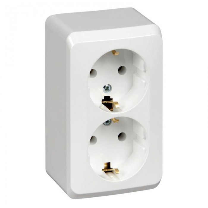 Розетка Systeme Electric (ранее Schneider Electric) ЭТЮД (белый, открытой установки) двухместная с заземлением, без шторок предназначена для применения в сетях до 250В, на ток до 16А. Двухместная розетка позволяет подключить два устройства в одном месте. Заземление обеспечивает безопасность при косвенном прикосновении. Она проста в установке и удобна в применении. Сделано в России.