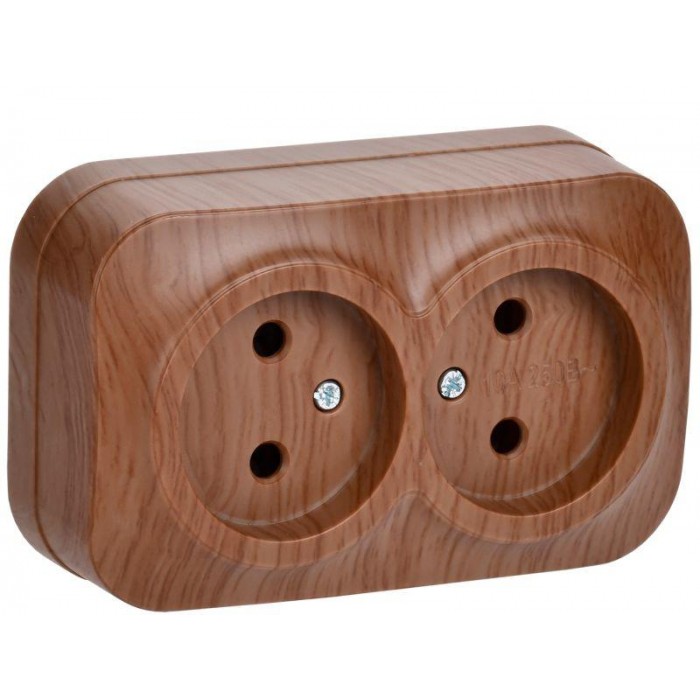 Розетка 2-м ОП GLORY РС22-2-ХД 10А без заземл. дуб IEK ERH20-K24-10
