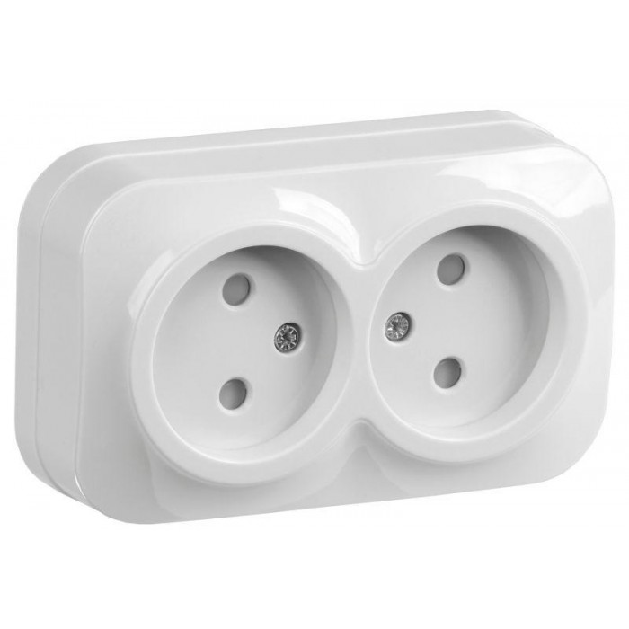 Розетка 2-м ОП GLORY РСш22-2-ХБ 10А без заземл. защ. шторки бел. IEK ERH23-K01-10