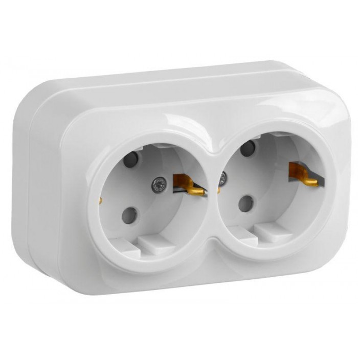 Розетка 2-м ОП GLORY РСш22-3-ХБ 16А с заземл. защ. шторки бел. IEK ERH24-K01-16