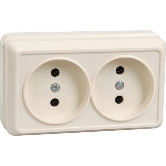 Розетка 2-м ОП Октава 10А IP20 без заземл. крем. IEK ERO20-K33-10-DC