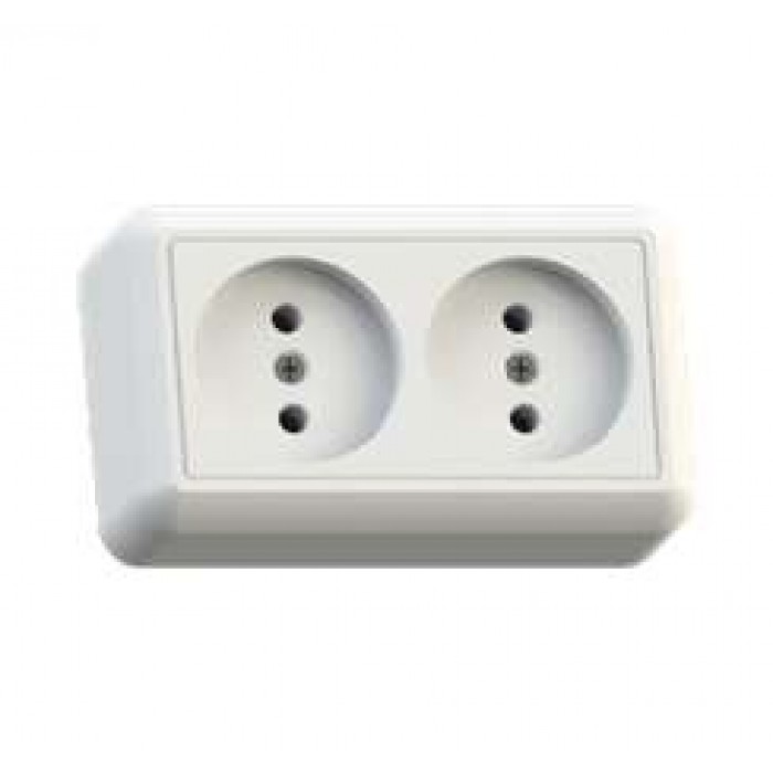Розетка 2-м ОП Оптима РА10-373 10А IP20 без заземл. с монтаж. пластиной бел. Кунцево 8009