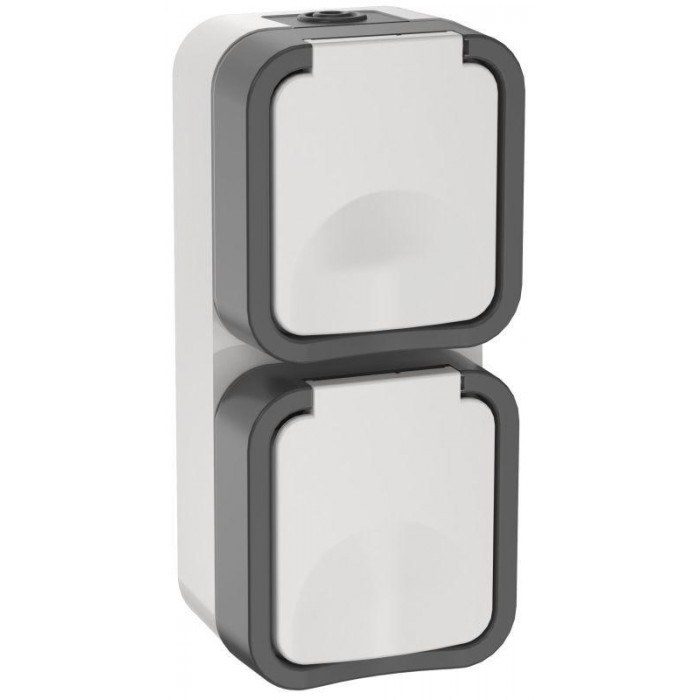 Розетка 2-м ОП TORS 16А IP55 TS232 вертик. с заземл. с крышкой бел. IEK TS-R26-16-55-V-K41