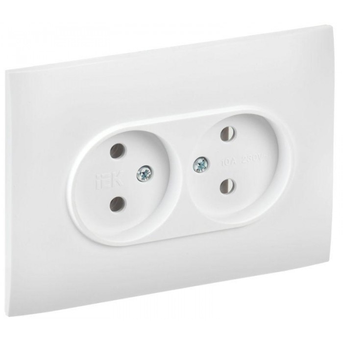 Розетка 2-м SKANDY 10А без заземл. без защ. шторок в сборе SK-R10W арктич. бел. IEK SK-R20-10-K01-F