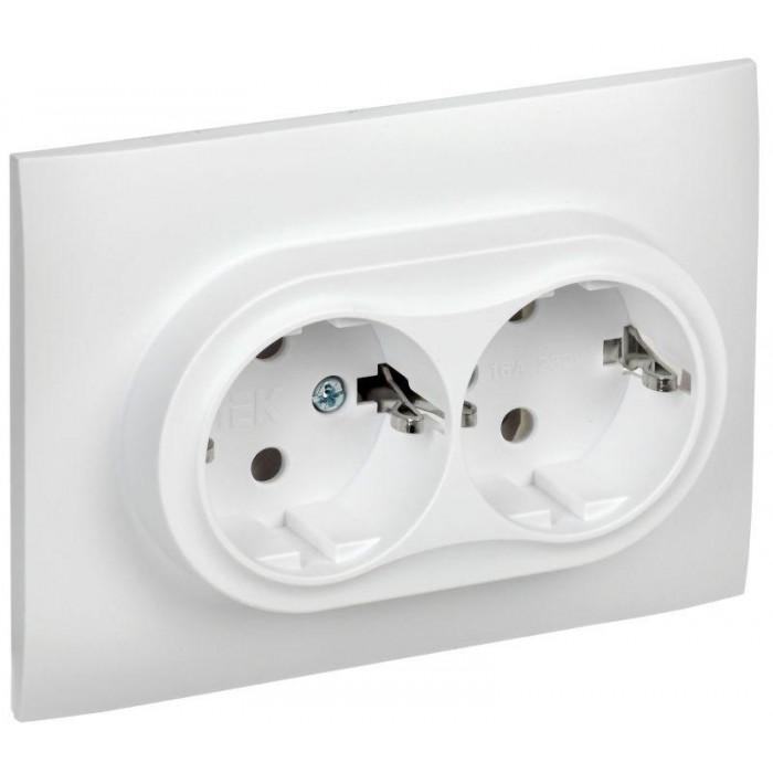 Розетка 2-м SKANDY 16А с заземл. без защ. шторок в сборе SK-R08W арктич. бел. IEK SK-R21-16-K01-F