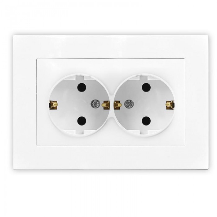 Розетка 2-м СП Афина 16А IP20 с заземл. в сборе бел. Universal A0128