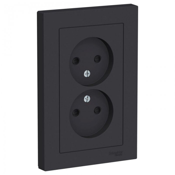 Розетка двойная Systeme Electric (ранее Schneider Electric) серии AtlasDesign (в сборе, цвет карбон) без заземления со шторками подходит для сетей 250 В, на ток 16 А. - Лицевые детали из качественного ABS-пластика, устой...