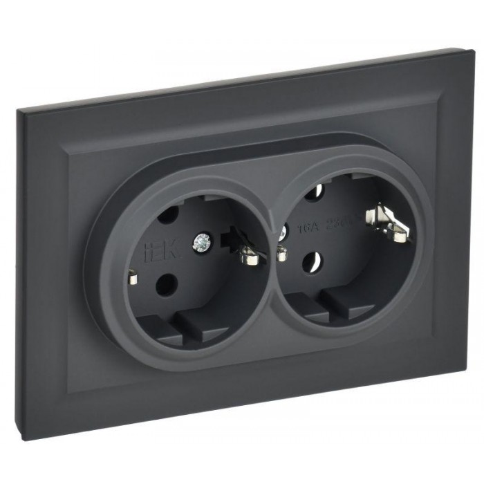 Розетка 2-м СП BRITE РС12-3-БрГ 16А в сборе с заземл. без защ. шторок графит IEK BR-R21-16-K53-F