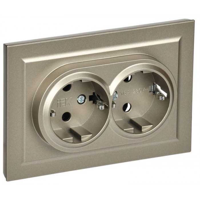 Розетка 2-м СП BRITE РС12-3-БрШ 16А в сборе с заземл. без защ. шторок шампань IEK BR-R21-16-K37-F