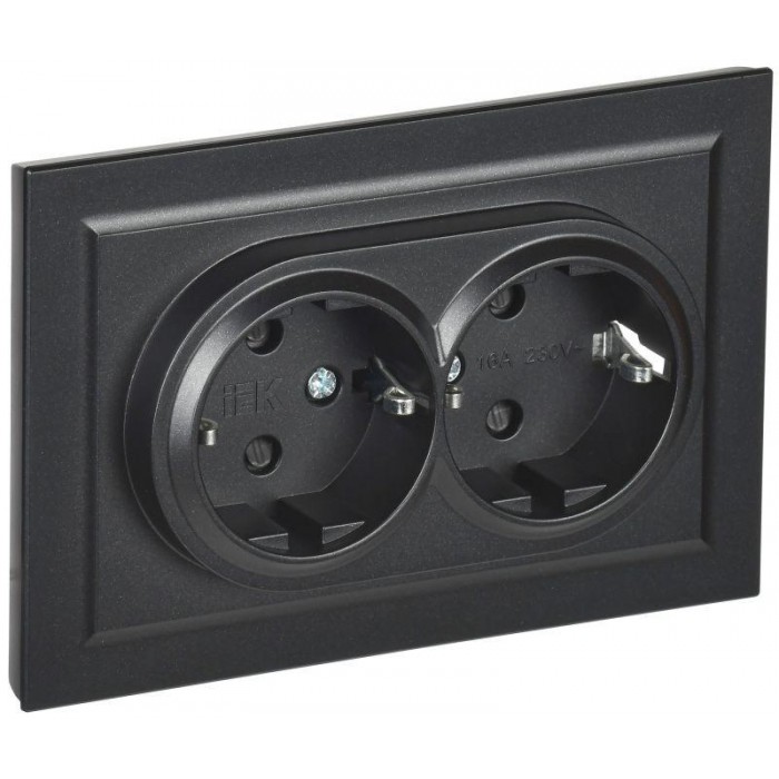 Розетка 2-м СП BRITE РСш12-3-БрЧ 16А в сборе с заземл. защ. шторки черн. IEK BR-R24-16-K02-F