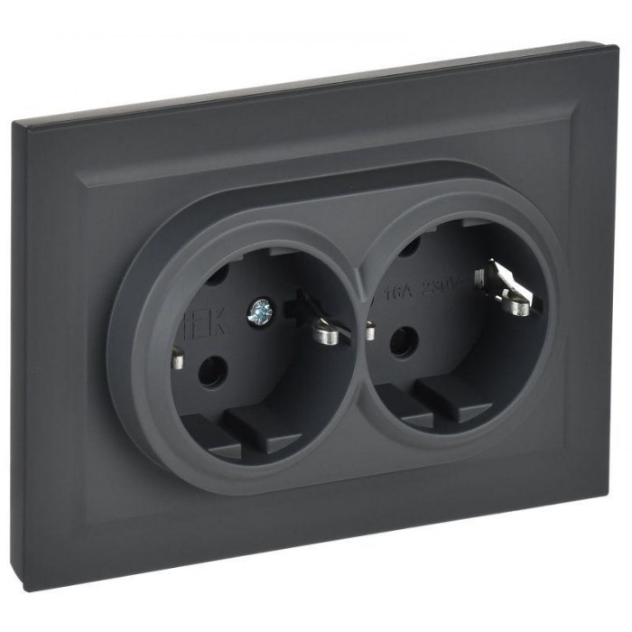 Розетка 2-м СП BRITE РСш12-3-БрГ 16А в сборе с заземл. защ. шторки графит IEK BR-R24-16-K53-F