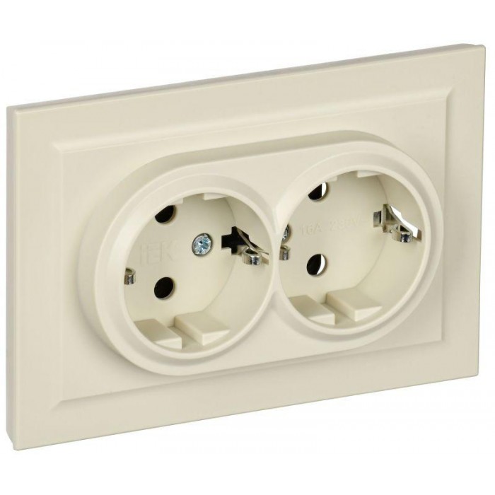 Розетка 2-м СП BRITE РСш12-3-БрКр 16А в сборе с заземл. защ. шторки беж. IEK BR-R24-16-K10-F