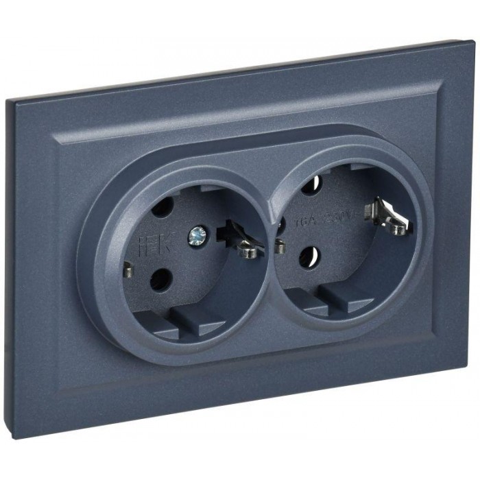 Розетка 2-м СП BRITE РСш12-3-БрМ 16А в сборе с заземл. защ. шторки маренго IEK BR-R24-16-K35-F
