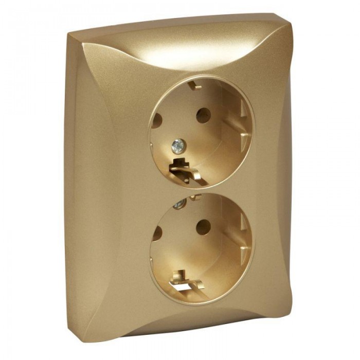 Дуэт Розетка двойная с заземлением, 16А, в сборе, шампань. тип устройства или его аксессуаров: 2-я розетка - комплектация изделия: механизм в сборе - описание стандарта розетки: с заземляющим контактом. Преимущества: Ваш вкус оценят, Доступная цена, Инновационный дизайн, Безопасность и надежность монтажа, Большой выбор функциональных возможностей и цветовых сочетаний, Безопасная эксплуатация изделий, Соответствие ГОСТ Р и МЭК, Удобная упаковка.. применения: - Для недорогого ремонта, Для загородного дома, Для офисов класса В, Для гостиниц..