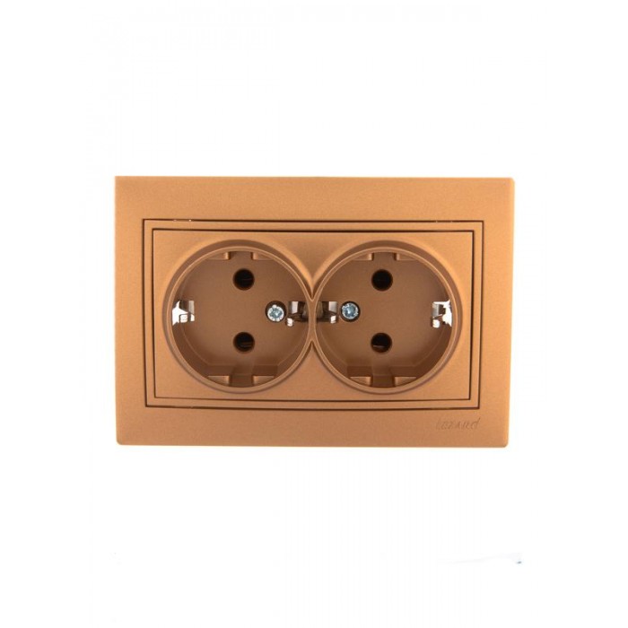Розетка 2-м СП Мира керам. с заземл. метал. зол. Lezard 701-1313-127 для скрытой установки сочетает в себе гармонию форм с изяществом плавных линий и гладкой фактуры. Изделия данной серии удачно вписываются в самый изысканный интерьер и производят приятное впечатление. Корпус представляет собой форму из негорючего пластика, с керамическим основанием, цвета металлик, декорирована рамкой золотистого цвета. Подпружиненные лапки крепления обеспечивают комфортный и легкий монтаж изделия. Предусмотрена возможность установки без применения монтажной коробки. Монтируется на одном уровне с поверхностью стены. Рекомендованы для жилых помещений и административных зданий.