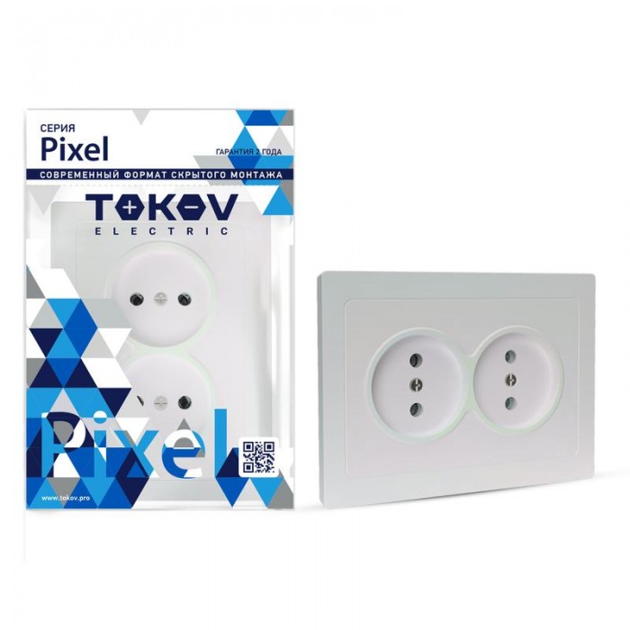 Розетка 2-м СП Pixel 16А IP20 без заземл. в сборе перламутр. TOKOV ELECTRIC TKE-PX-R2F-C04