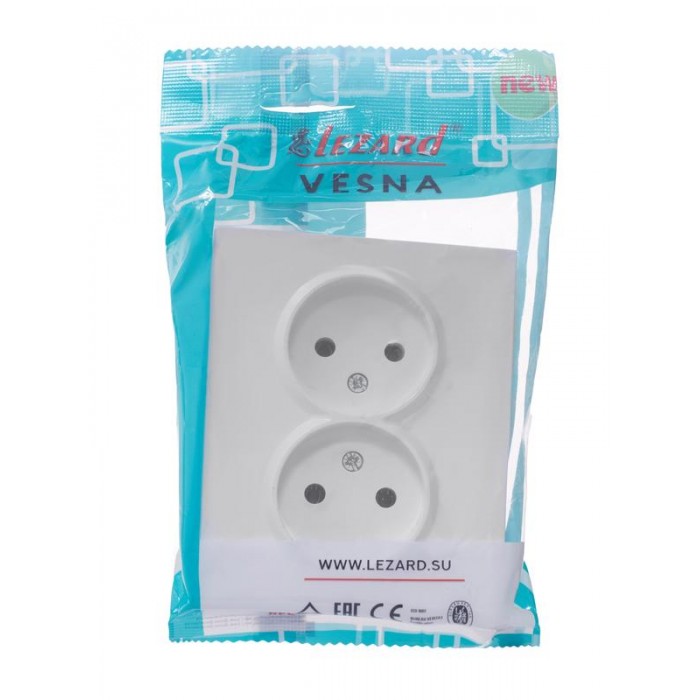 Розетка 2-м СП VESNA без заземл. ПБТ бел. LEZARD 742-0200-128B 1634045