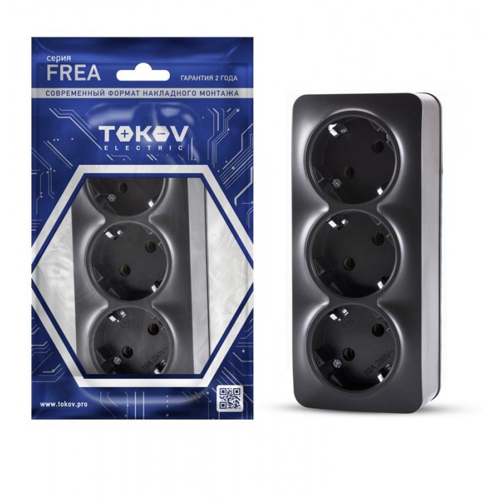 Розетка 3-м ОП Frea 16А IP20 250В с заземл. АБС-пластик карбон TOKOV ELECTRIC TKE-FR-R3Z-C14 1792429...