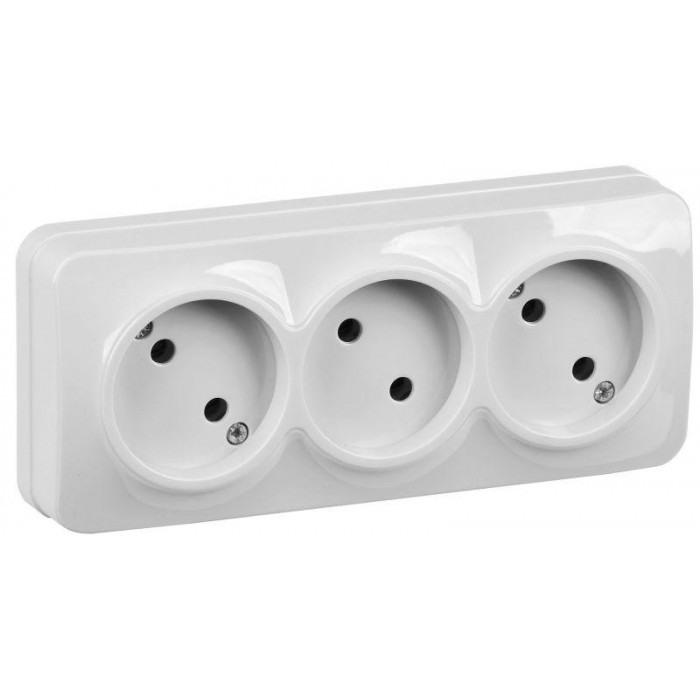 Розетка 3-м ОП GLORY РС23-2-ХБ 10А без заземл. бел. IEK ERH30-K01-10