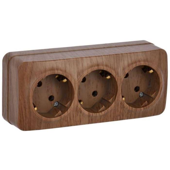 Розетка 3-м ОП GLORY РС23-3-ХД 16А с заземл. дуб IEK ERH31-K24-16