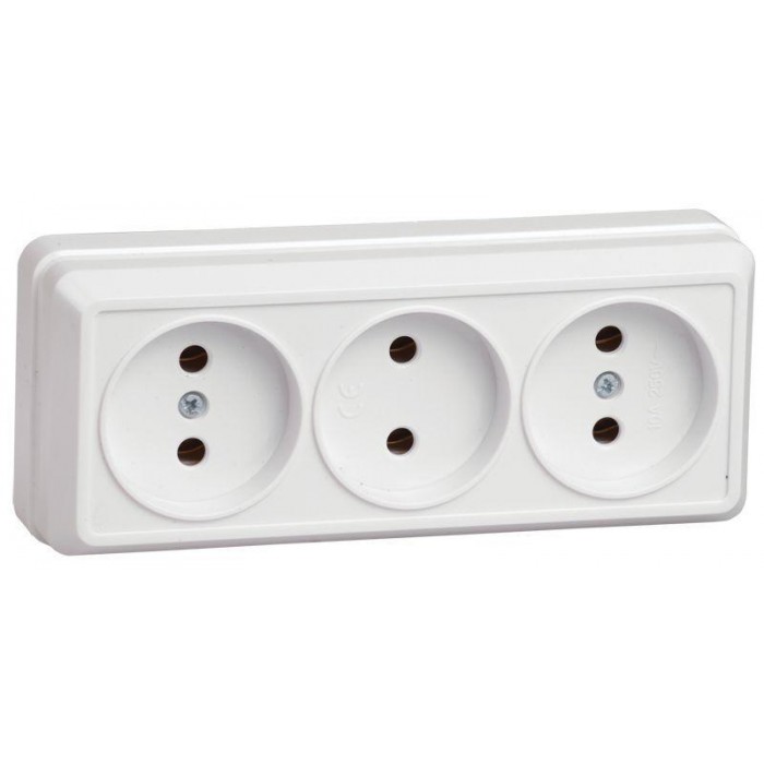 Розетка 3-м ОП Октава 10А IP20 без заземл. бел. IEK ERO30-K01-10-DC